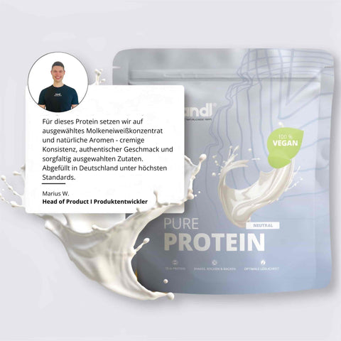 Wir haben die Rezeptur unseres veganen Pure Proteins optimiert, um dir ein noch besseres Geschmackserlebnis und eine verbesserte Konsistenz zu bieten. Durch die Kombination von hochwertigen pflanzlichen Eiweißen und einer noch präziseren Abstimmung auf die geschmacklichen Eigenschaften haben wir ein Proteinpulver geschaffen, das noch cremiger und besser löslich ist – für den perfekten Shake, der sich ganz leicht zubereiten lässt.