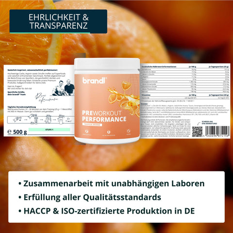Wir haben die Rezeptur des PreWorkout Performance optimiert, um euch einen verbesserten Geschmack und mehr Portionen pro Dose zu bieten. Dank der Reduzierung der Portionsgröße auf 25 g pro Portion erhältst du jetzt mehr aus jeder Dose, ohne auf Qualität zu verzichten. Das Feedback unserer Kunden war uns besonders wichtig, um die Rezeptur an eure Wünsche anzupassen und dir das beste Erlebnis zu bieten. Bei Fragen kannst du uns gerne unter support@brandl-nutrition.de kontaktieren.