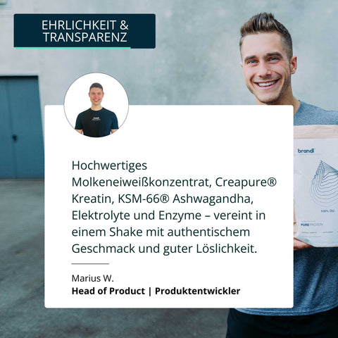 NEU: Optimierte Rezeptur & Geschmack Hochwertiges Protein mit Whey aus den Niederlanden U.a. Enzyme, Elektolyte, Kreatin & Ashwagandha Abgefüllt in DE & ohne Sucralose