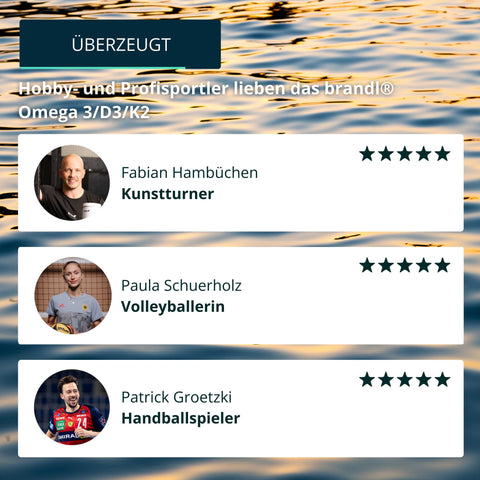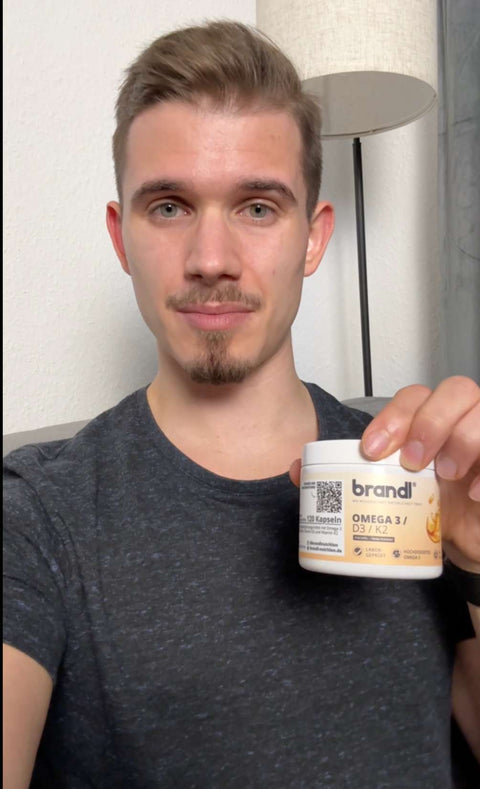 Das All-in-One Produkt von brandl® versorgt dich mit Omega 3 Fettsäuren und Vitamin D3 in Kombination mit Vitamin K2.
